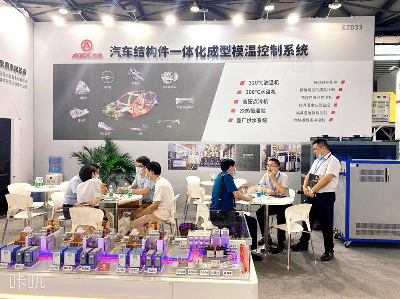 奧德推出“汽車結(jié)構(gòu)件一體化成型溫控系統(tǒng)”,并攜320℃超高溫油溫機,200℃超高溫水溫機、壓鑄專用冷熱溫控系統(tǒng)、工業(yè)風(fēng)冷冷水機亮相本次壓鑄展。