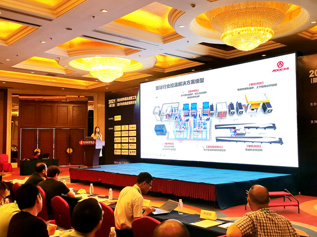 會(huì)議期間,圍繞“2021第六屆復(fù)合材料模壓成型工藝技術(shù)與市場應(yīng)用”展開了專題講座,來自國內(nèi)外復(fù)合材料生產(chǎn)企業(yè)、產(chǎn)業(yè)鏈上下游企業(yè)、復(fù)合材料終端應(yīng)用企業(yè)代表在現(xiàn)場進(jìn)行報(bào)告分享,并與參會(huì)人員進(jìn)行技術(shù)交流和商務(wù)合作洽談。奧德作為溫控行業(yè)設(shè)備制造與方案系統(tǒng)集成代表企業(yè),分享了“復(fù)合材料行業(yè)溫控系統(tǒng)解決方案與應(yīng)用”的報(bào)告,就模溫機(jī)在復(fù)材行業(yè)的應(yīng)用及復(fù)材行業(yè)溫控需求分析做了詳細(xì)解讀。